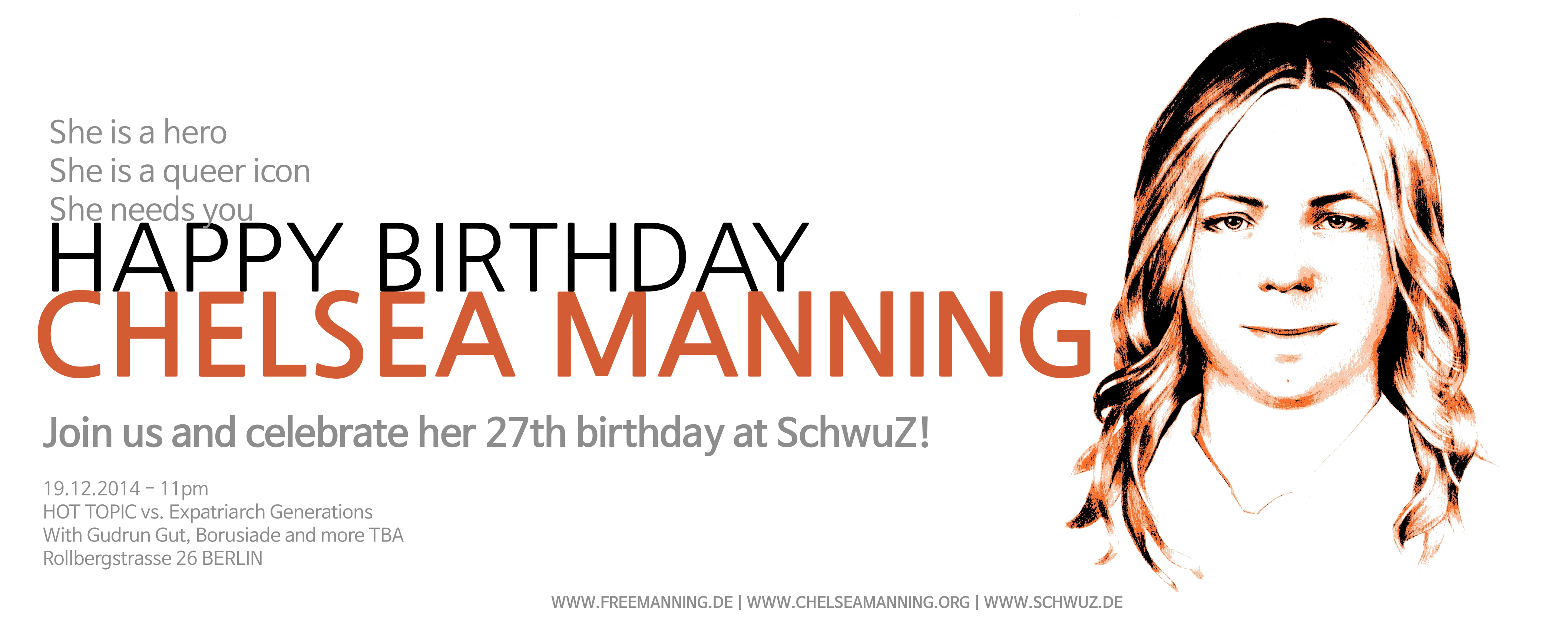 Deswegen werden wir am 19. Dezember auf der Hot Topic im SchwuZ sein: Wir wollen Chelsea Mannings Geburtstag mit euch feiern.