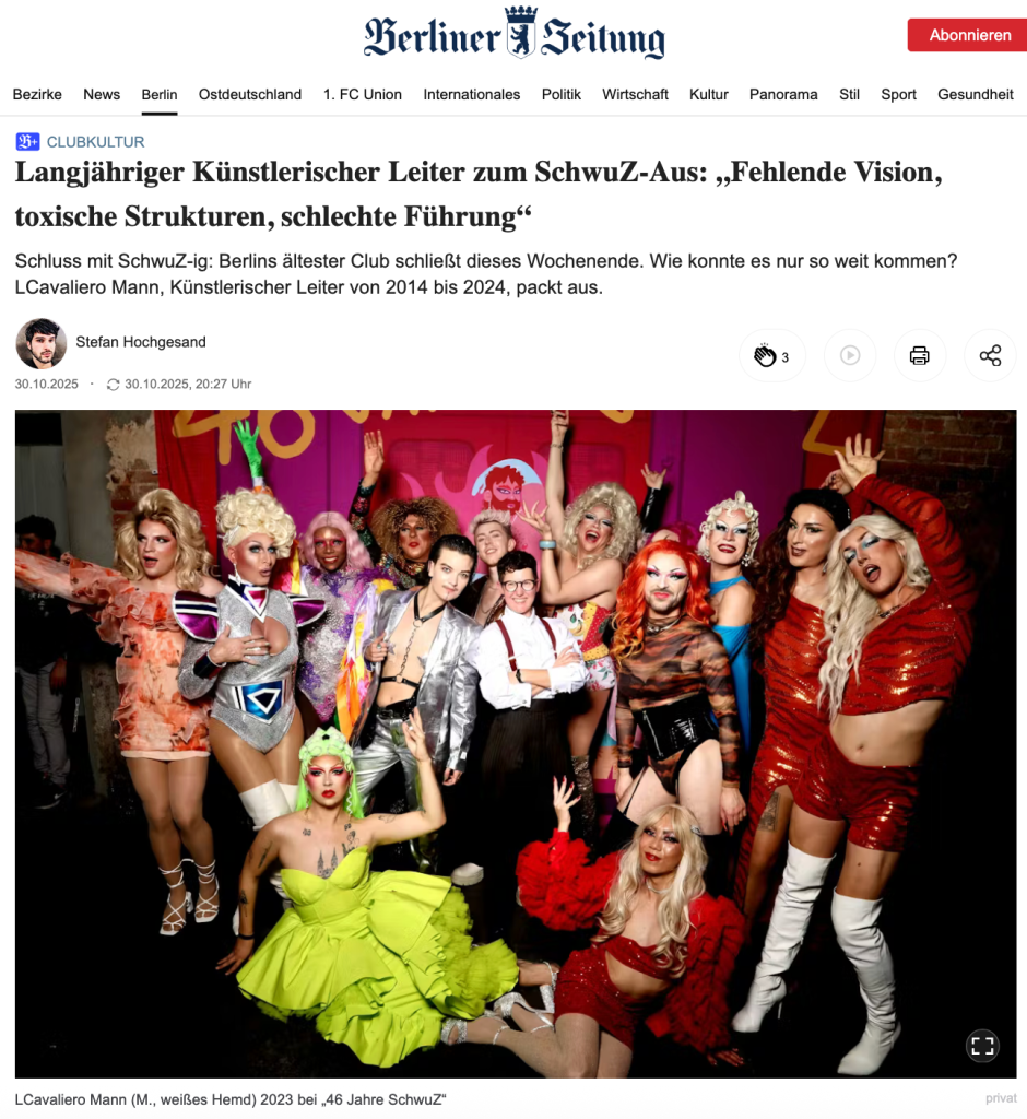 Durfte mit der Berliner Zeitung ein Interview zur Schließung des SchwuZ führen. Danke vielmals Stefan Hochgesand.
